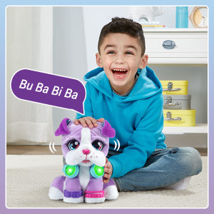 Перейдіть до режиму обіймів, щоб почути солодкі звуки цуценя. Діджей навіть трохи чхає, коли їй затикає носа! Обійми заохочуються її м'яким плюшевим хутром.